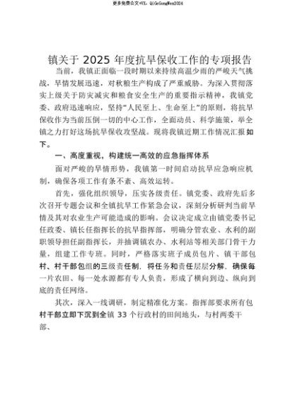 【七哥公文】2025年:【七哥公文】镇关于2025年度抗旱保收工作的专项报告_20250815_213030+更多免费公文+VX:QiGeGongWen2024+更多免费公文+VX:QiGeGongWen2024