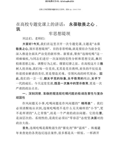 【七哥公文】2025年:【七哥公文】在高校专题党课上的讲话:永葆敬畏之心,筑牢思想堤坝+更多免费公文+VX:QiGeGongWen2024+更多免费公文+VX:QiGeGongWen2024
