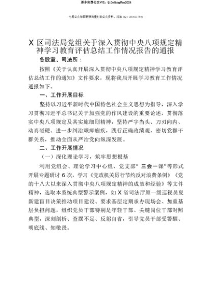 【七哥公文】2025年:【七哥公文】X区司法局党组关于深入贯彻中央八项规定精神学习教育评估总结工作情况报告的通报+更多免费公文+VX:QiGeGongWen2024+更多免费公文+VX:QiGeGongWen2024