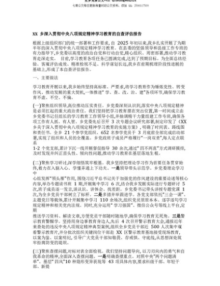 【七哥公文】2025年:【七哥公文】【团队精品】XX乡深入贯彻中央BXGD精神学习教育的自查评估报告+更多免费公文+VX:QiGeGongWen2024+更多免费公文+VX:QiGeGongWen2024