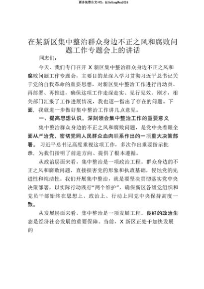 【七哥公文】2025年:【七哥公文】在某新区集中整治群众身边不正之风和腐败问题工作专题会上的讲话_20250815_213029+更多免费公文+VX:QiGeGongWen2024+更多免费公文+VX:QiGeGongWen2024