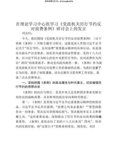 【七哥公文】2025年:【七哥公文】在理论学习中心组学习《党政机关厉行节约反对浪费条例》研讨会上的发言_20250815_213029+更多免费公文+VX:QiGeGongWen2024+更多免费公文+VX:QiGeGongWen2024
