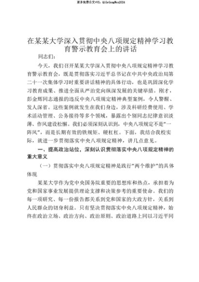 【七哥公文】2025年:【七哥公文】在某某大学深入贯彻中央八项规定精神学习教育警示教育会上的讲话_20250815_213029+更多免费公文+VX:QiGeGongWen2024+更多免费公文+VX:QiGeGongWen2024