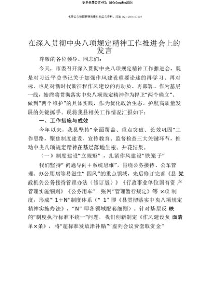 【七哥公文】2025年:【七哥公文】在深入贯彻中央八项规定精神工作推进会上的发言+更多免费公文+VX:QiGeGongWen2024+更多免费公文+VX:QiGeGongWen2024