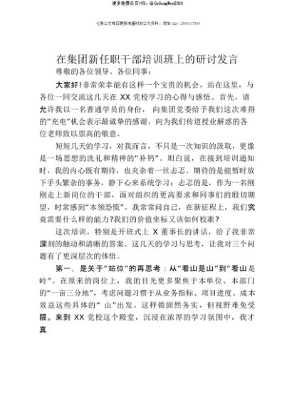 【七哥公文】2025年:【七哥公文】在集团新任职干部培训班上的研讨发言+更多免费公文+VX:QiGeGongWen2024+更多免费公文+VX:QiGeGongWen2024