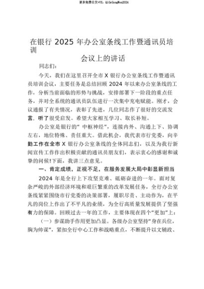 【七哥公文】2025年:【七哥公文】在银行2025年办公室条线工作暨通讯员培训会议上的讲话_20250815_213029+更多免费公文+VX:QiGeGongWen2024+更多免费公文+VX:QiGeGongWen2024