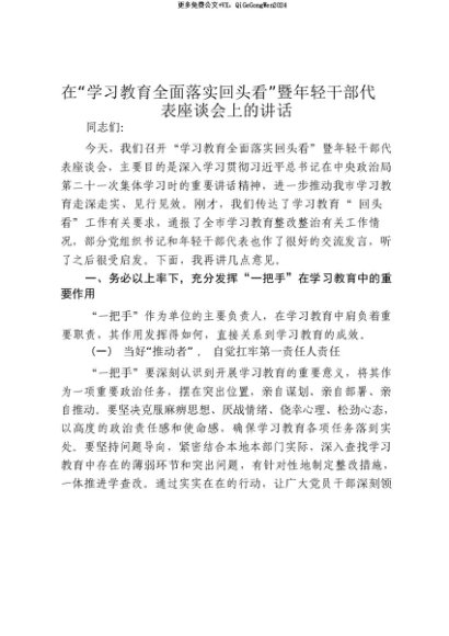 【七哥公文】2025年:【七哥公文】在贯彻中央八项规定精神“学习教育全面落实回头看”暨年轻干部代表座谈会上的讲话_20250815_213029+更多免费公文+VX:QiGeGongWen2024+更多免费公文+VX:QiGeGongWen2024