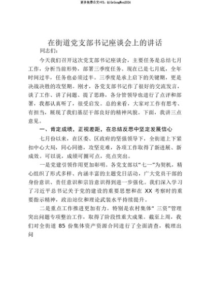 【七哥公文】2025年:【七哥公文】在街道党支部书记座谈会上的讲话_20250815_213029+更多免费公文+VX:QiGeGongWen2024+更多免费公文+VX:QiGeGongWen2024