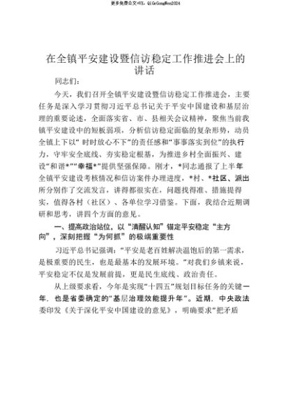 【七哥公文】2025年:【七哥公文】在全镇平安建设暨信访稳定工作推进会上的讲话_20250815_213029+更多免费公文+VX:QiGeGongWen2024+更多免费公文+VX:QiGeGongWen2024