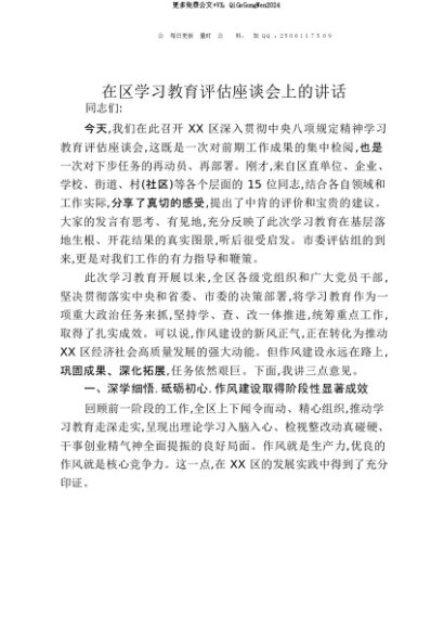 【七哥公文】2025年:【七哥公文】在区贯彻中央八项规定精神学习教育评估座谈会上的讲话+更多免费公文+VX:QiGeGongWen2024+更多免费公文+VX:QiGeGongWen2024