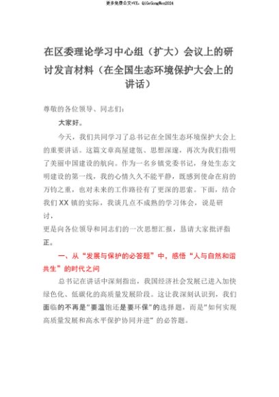 【七哥公文】2025年:【七哥公文】在区委理论学习中心组(扩大)会议上的研讨发言材料(在全国生态环境保护大会上的讲话)_20250815_213029+更多免费公文+VX:QiGeGongWen2024+更多免费公文+VX:QiGeGongWen2024