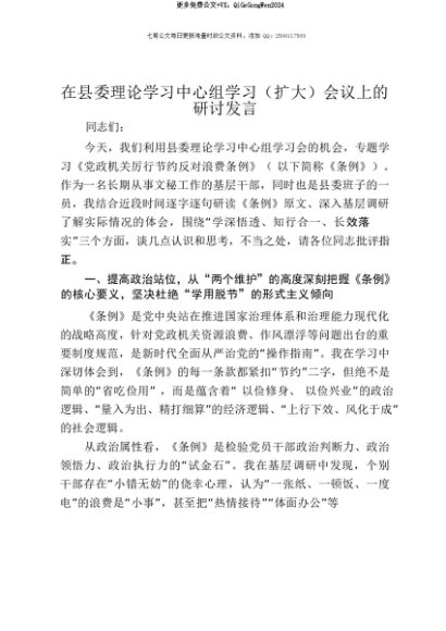 【七哥公文】2025年:【七哥公文】在县委理论学习中心组学习(扩大)会议上的研讨发言+更多免费公文+VX:QiGeGongWen2024+更多免费公文+VX:QiGeGongWen2024