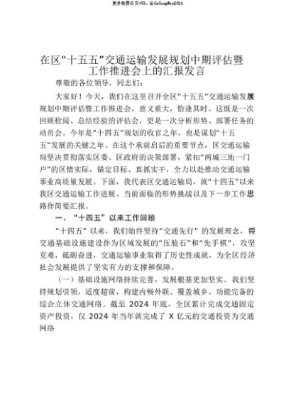 【七哥公文】2025年:【七哥公文】在区“十五五”交通运输发展规划中期评估暨工作推进会上的汇报发言_20250815_213029+更多免费公文+VX:QiGeGongWen2024+更多免费公文+VX:QiGeGongWen2024