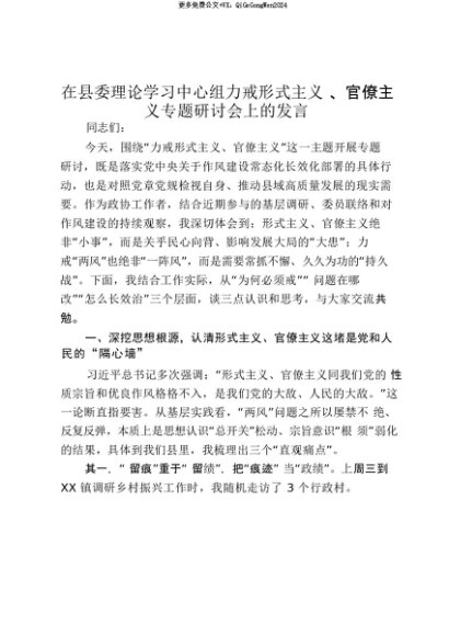 【七哥公文】2025年:【七哥公文】在县委理论学习中心组力戒形式主义、官僚主义专题研讨会上的发言_20250815_213029+更多免费公文+VX:QiGeGongWen2024+更多免费公文+VX:QiGeGongWen2024