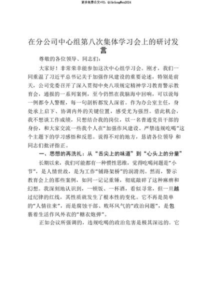 【七哥公文】2025年:【七哥公文】在分公司中心组第八次集体学习会上的研讨发言_20250815_213029+更多免费公文+VX:QiGeGongWen2024+更多免费公文+VX:QiGeGongWen2024