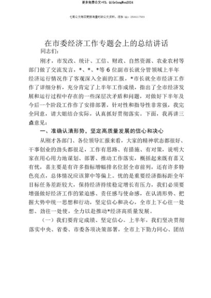 【七哥公文】2025年:【七哥公文】在市委经济工作专题会上的总结讲话+更多免费公文+VX:QiGeGongWen2024+更多免费公文+VX:QiGeGongWen2024