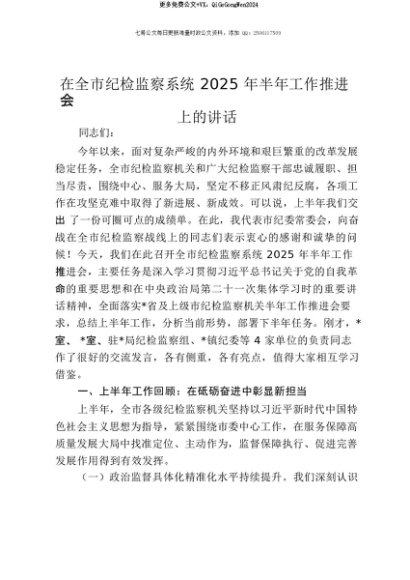 【七哥公文】2025年:【七哥公文】在全市纪检监察系统2025年半年工作推进会上的讲话+更多免费公文+VX:QiGeGongWen2024+更多免费公文+VX:QiGeGongWen2024