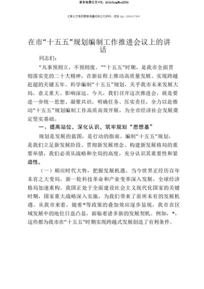 【七哥公文】2025年:【七哥公文】在市“十五五”规划编制工作推进会议上的讲话+更多免费公文+VX:QiGeGongWen2024+更多免费公文+VX:QiGeGongWen2024