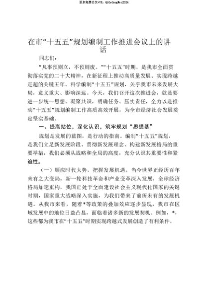 【七哥公文】2025年:【七哥公文】在市“十五五”规划编制工作推进会议上的讲话_20250815_213029+更多免费公文+VX:QiGeGongWen2024+更多免费公文+VX:QiGeGongWen2024
