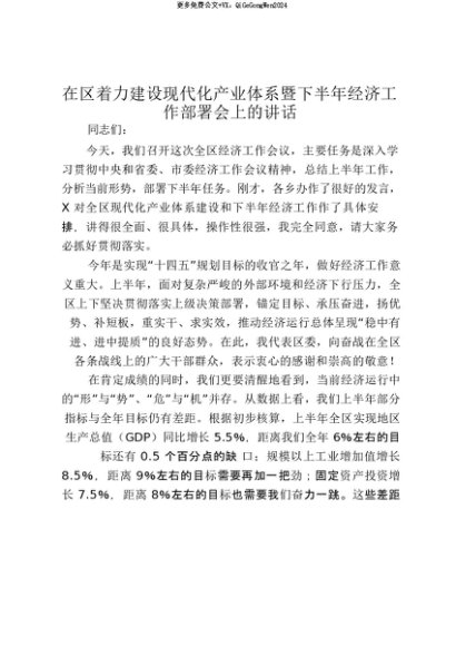 【七哥公文】2025年:【七哥公文】在区着力建设现代化产业体系暨下半年经济工作部署会上的讲话_20250815_213029+更多免费公文+VX:QiGeGongWen2024+更多免费公文+VX:QiGeGongWen2024