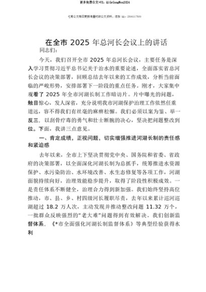 【七哥公文】2025年:【七哥公文】在全市2025年总河长会议上的讲话+更多免费公文+VX:QiGeGongWen2024+更多免费公文+VX:QiGeGongWen2024