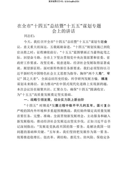 【七哥公文】2025年:【七哥公文】在全市“十四五”总结暨“十五五”谋划专题会上的讲话_20250815_213028+更多免费公文+VX:QiGeGongWen2024+更多免费公文+VX:QiGeGongWen2024