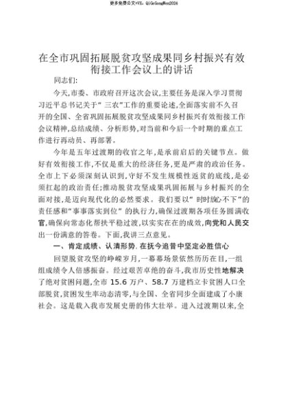 【七哥公文】2025年:【七哥公文】在全市巩固拓展脱贫攻坚成果同乡村振兴有效衔接工作会议上的讲话3_20250815_213029+更多免费公文+VX:QiGeGongWen2024+更多免费公文+VX:QiGeGongWen2024