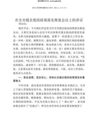 【七哥公文】2025年:【七哥公文】在全市援企稳岗政策落实推进会议上的讲话+更多免费公文+VX:QiGeGongWen2024+更多免费公文+VX:QiGeGongWen2024