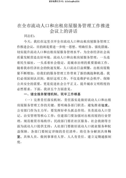 【七哥公文】2025年:【七哥公文】在全市流动人口和出租房屋服务管理工作推进会议上的讲话_20250815_213029+更多免费公文+VX:QiGeGongWen2024+更多免费公文+VX:QiGeGongWen2024