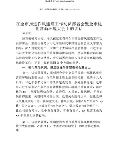 【七哥公文】2025年:【七哥公文】在全市推进作风建设工作动员部署会暨全市优化营商环境大会上的讲话+更多免费公文+VX:QiGeGongWen2024+更多免费公文+VX:QiGeGongWen2024