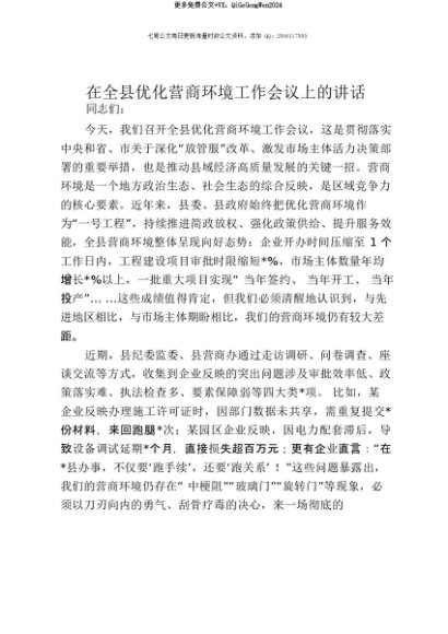 【七哥公文】2025年:【七哥公文】在全县优化营商环境工作会议上的讲话+更多免费公文+VX:QiGeGongWen2024+更多免费公文+VX:QiGeGongWen2024