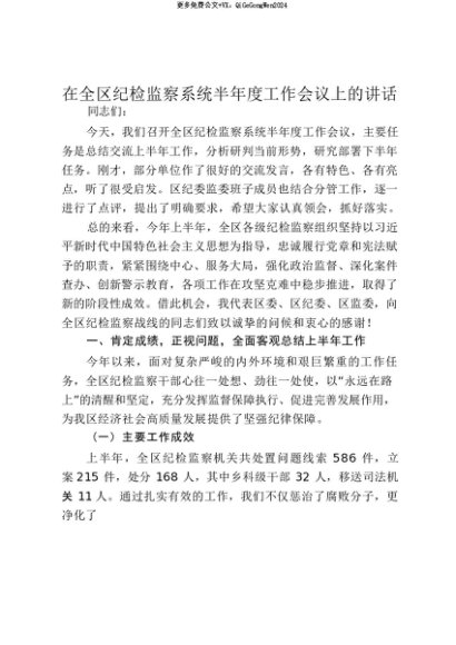 【七哥公文】2025年:【七哥公文】在全区纪检监察系统半年度工作会议上的讲话_20250815_213028+更多免费公文+VX:QiGeGongWen2024+更多免费公文+VX:QiGeGongWen2024