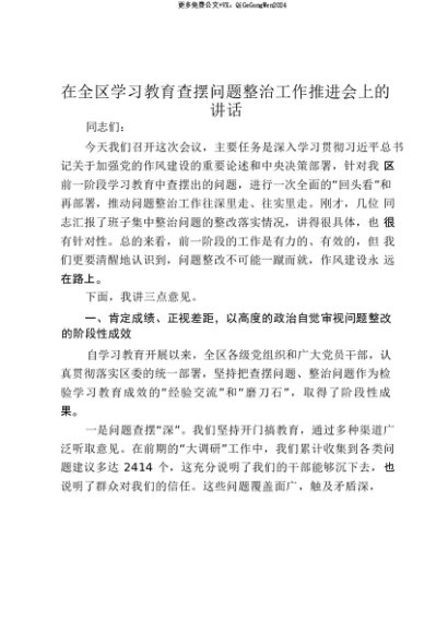 【七哥公文】2025年:【七哥公文】在全区贯彻中央八项规定精神学习教育查摆问题整治工作推进会上的讲话_20250815_213029+更多免费公文+VX:QiGeGongWen2024+更多免费公文+VX:QiGeGongWen2024