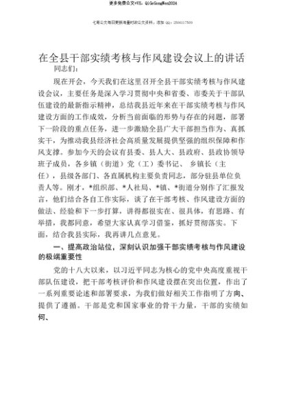 【七哥公文】2025年:【七哥公文】在全县干部实绩考核与作风建设会议上的讲话+更多免费公文+VX:QiGeGongWen2024+更多免费公文+VX:QiGeGongWen2024