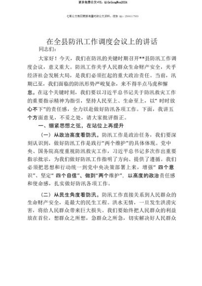 【七哥公文】2025年:【七哥公文】在全县防汛工作调度会议上的讲话+更多免费公文+VX:QiGeGongWen2024+更多免费公文+VX:QiGeGongWen2024