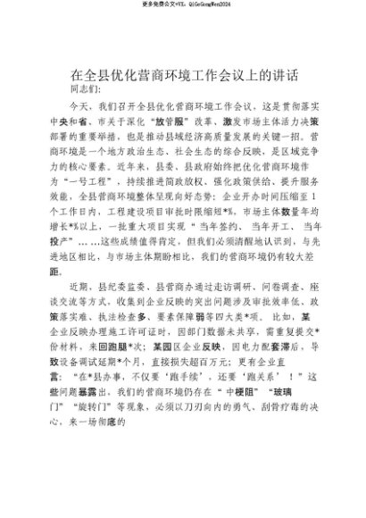 【七哥公文】2025年:【七哥公文】在全县优化营商环境工作会议上的讲话_20250815_213029+更多免费公文+VX:QiGeGongWen2024+更多免费公文+VX:QiGeGongWen2024