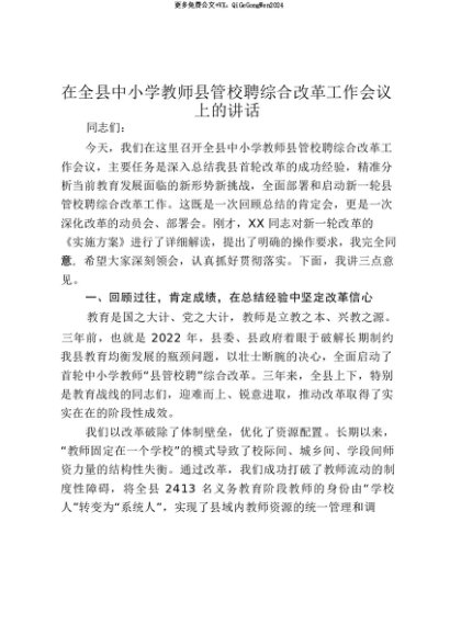 【七哥公文】2025年:【七哥公文】在全县中小学教师县管校聘综合改革工作会议上的讲话_20250815_213029+更多免费公文+VX:QiGeGongWen2024+更多免费公文+VX:QiGeGongWen2024