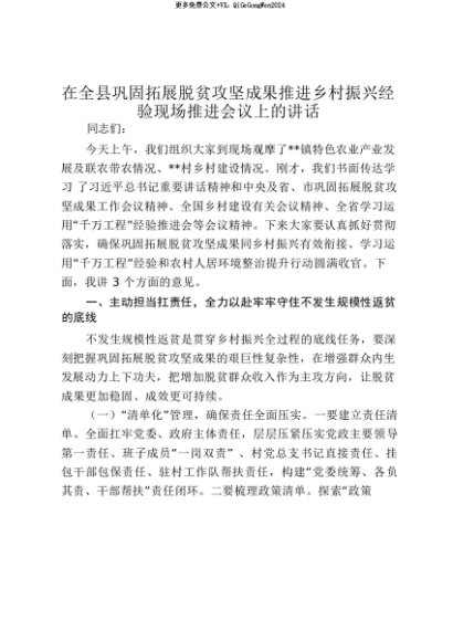 【七哥公文】2025年:【七哥公文】在全县巩固拓展脱贫攻坚成果推进乡村振兴经验现场推进会议上的讲话_20250815_213029+更多免费公文+VX:QiGeGongWen2024+更多免费公文+VX:QiGeGongWen2024