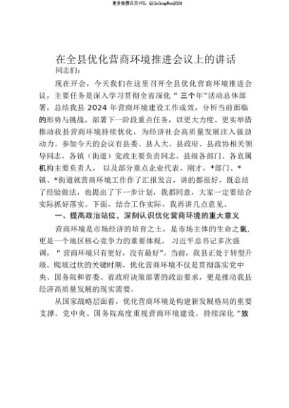 【七哥公文】2025年:【七哥公文】在全县优化营商环境推进会议上的讲话_20250815_213029+更多免费公文+VX:QiGeGongWen2024+更多免费公文+VX:QiGeGongWen2024