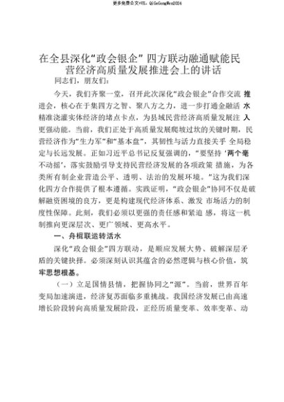 【七哥公文】2025年:【七哥公文】在全县深化“政会银企”四方联动融通赋能民营经济高质量发展推进会上的讲话_20250815_213029+更多免费公文+VX:QiGeGongWen2024+更多免费公文+VX:QiGeGongWen2024