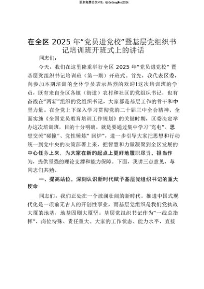 【七哥公文】2025年:【七哥公文】在全区2025年“党员进党校”暨基层党组织书记培训班开班式上的讲话_20250815_213028+更多免费公文+VX:QiGeGongWen2024+更多免费公文+VX:QiGeGongWen2024