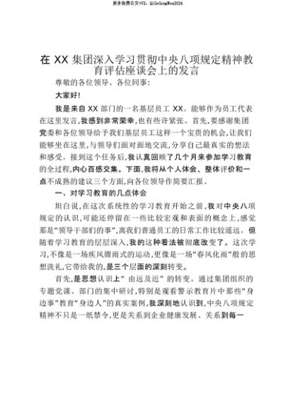 【七哥公文】2025年:【七哥公文】在XX集团深入学习贯彻中央八项规定精神教育评估座谈会上的发言_20250815_213028+更多免费公文+VX:QiGeGongWen2024+更多免费公文+VX:QiGeGongWen2024