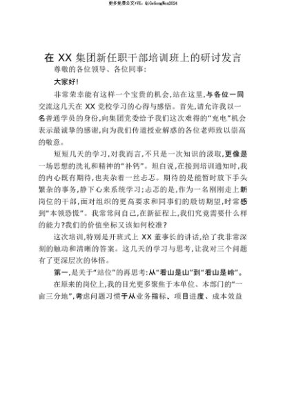 【七哥公文】2025年:【七哥公文】在XX集团新任职干部培训班上的研讨发言_20250815_213028+更多免费公文+VX:QiGeGongWen2024+更多免费公文+VX:QiGeGongWen2024