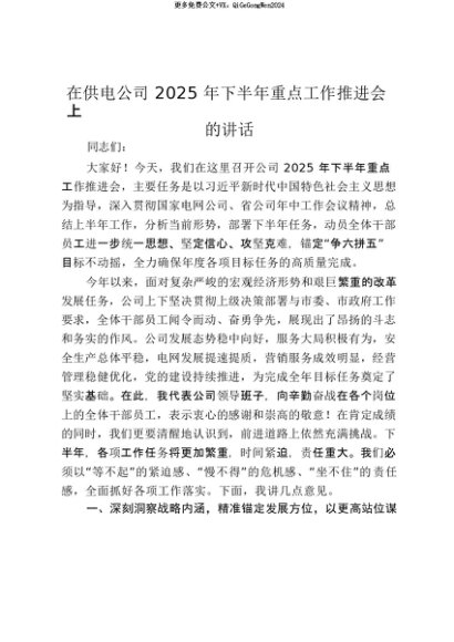 【七哥公文】2025年:【七哥公文】在供电公司2025年下半年重点工作推进会上的讲话_20250815_213028+更多免费公文+VX:QiGeGongWen2024+更多免费公文+VX:QiGeGongWen2024