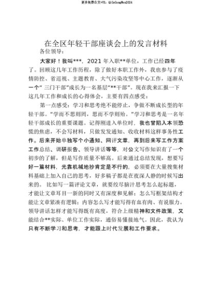【七哥公文】2025年:【七哥公文】在全区年轻干部座谈会上的发言材料_20250815_213028+更多免费公文+VX:QiGeGongWen2024+更多免费公文+VX:QiGeGongWen2024