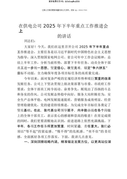 【七哥公文】2025年:【七哥公文】在供电公司2025年下半年重点工作推进会上的讲话+更多免费公文+VX:QiGeGongWen2024+更多免费公文+VX:QiGeGongWen2024