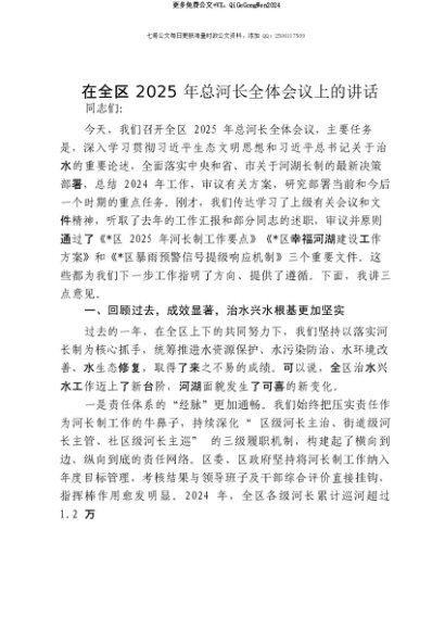 【七哥公文】2025年:【七哥公文】在全区2025年总河长全体会议上的讲话+更多免费公文+VX:QiGeGongWen2024+更多免费公文+VX:QiGeGongWen2024