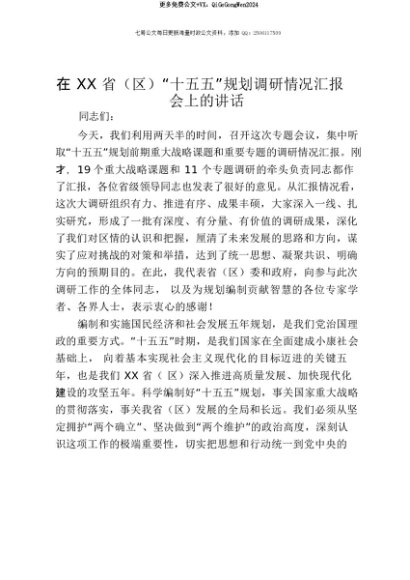 【七哥公文】2025年:【七哥公文】在XX省(区)“十五五”规划调研情况汇报会上的讲话+更多免费公文+VX:QiGeGongWen2024+更多免费公文+VX:QiGeGongWen2024