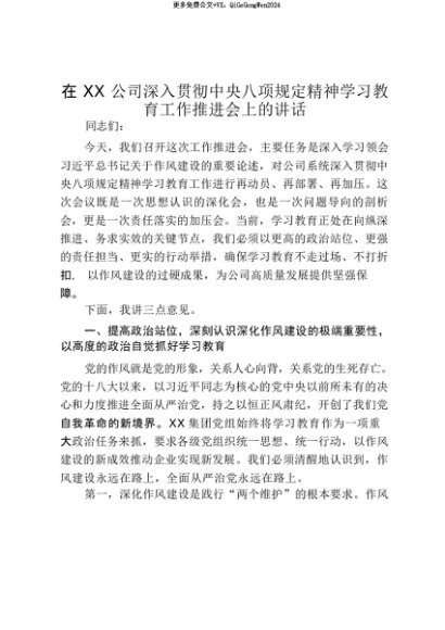 【七哥公文】2025年:【七哥公文】在XX公司深入贯彻中央八项规定精神学习教育工作推进会上的讲话_20250815_213027+更多免费公文+VX:QiGeGongWen2024+更多免费公文+VX:QiGeGongWen2024