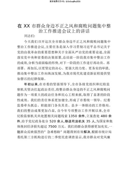 【七哥公文】2025年:【七哥公文】在XX市群众身边不正之风和腐败问题集中整治工作推进会议上的讲话_20250815_213028+更多免费公文+VX:QiGeGongWen2024+更多免费公文+VX:QiGeGongWen2024